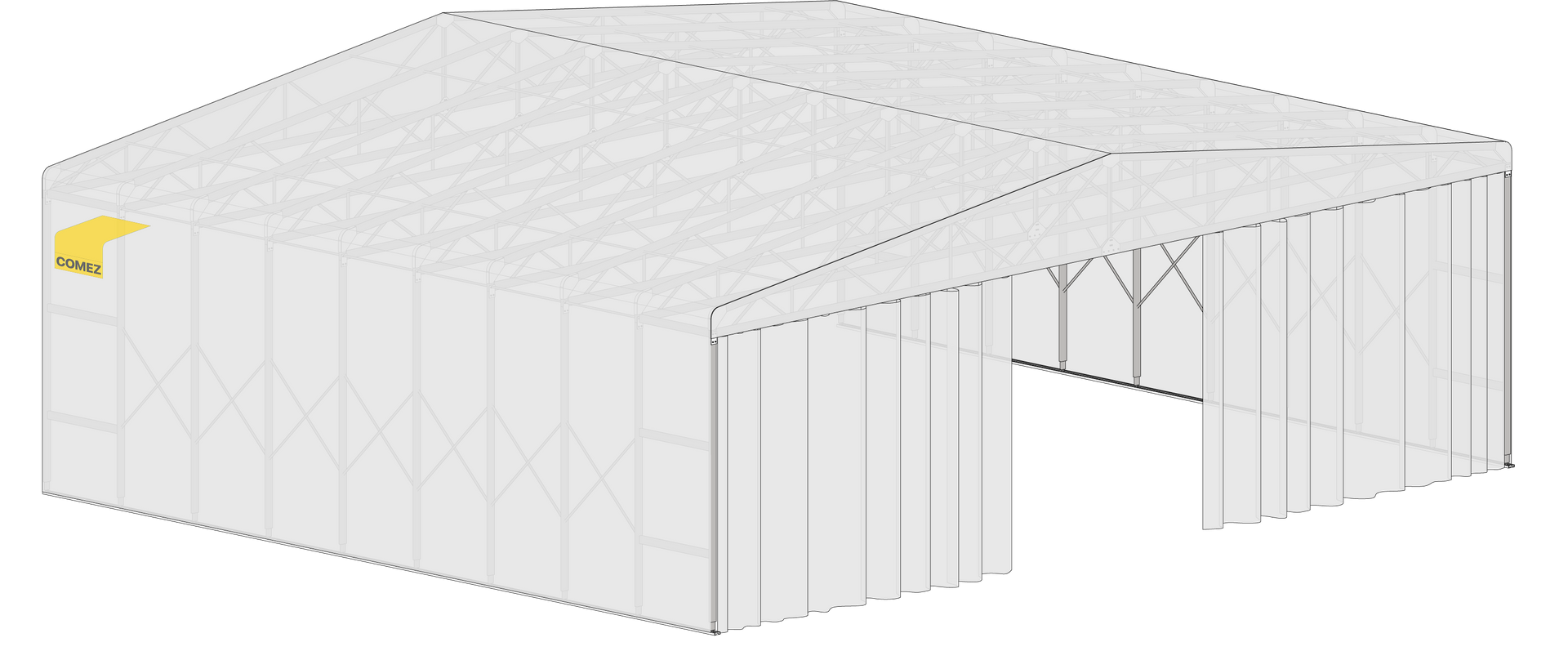 Tutte le caratteristiche di un tunnel scorrevole combinate con la tecnologia delle chiusure industriali. Ideale per locali magazzino soggetti ad elevato flusso di transito